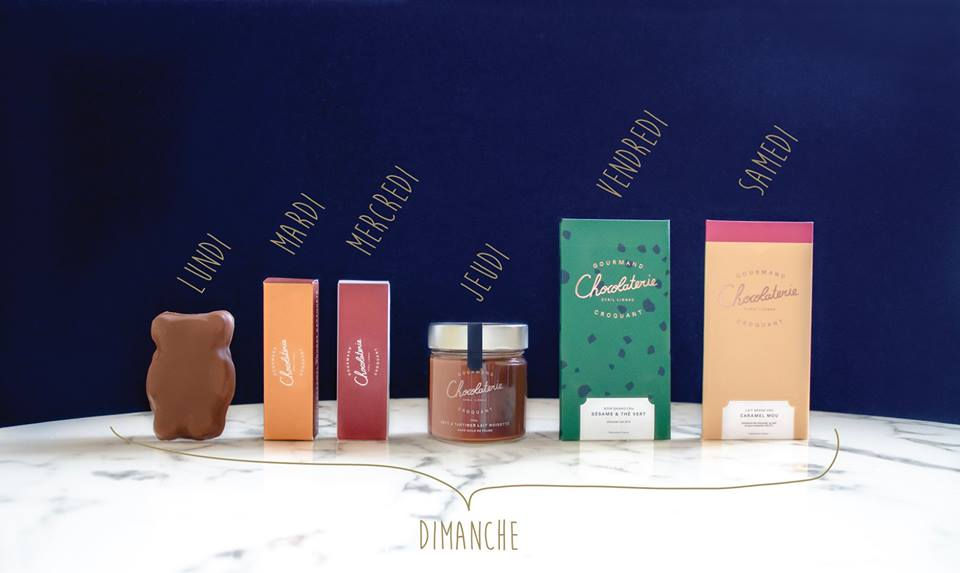 Development of a plan for the creation of the visual identity of the chocolatier for 6 stores, defining key elements such as logo, typography, colors, 45 packagings, flyers, business cards, web design, and merchandising.